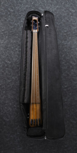 The UB's design (34” scale length) allows for a smooth transition from bass guitar to this particular upright. Its conical compound fingerboard radius perfectly facilitates smooth bowing and fast plucking. The compact Maple body was designed to balance form and function, resulting in a bass that provides outstanding visuals and incredible playability. Despite its compact body, the UB does not sacrifice acoustic tone, projecting a robust natural sound. The smaller body also allows for quick and easy transport.