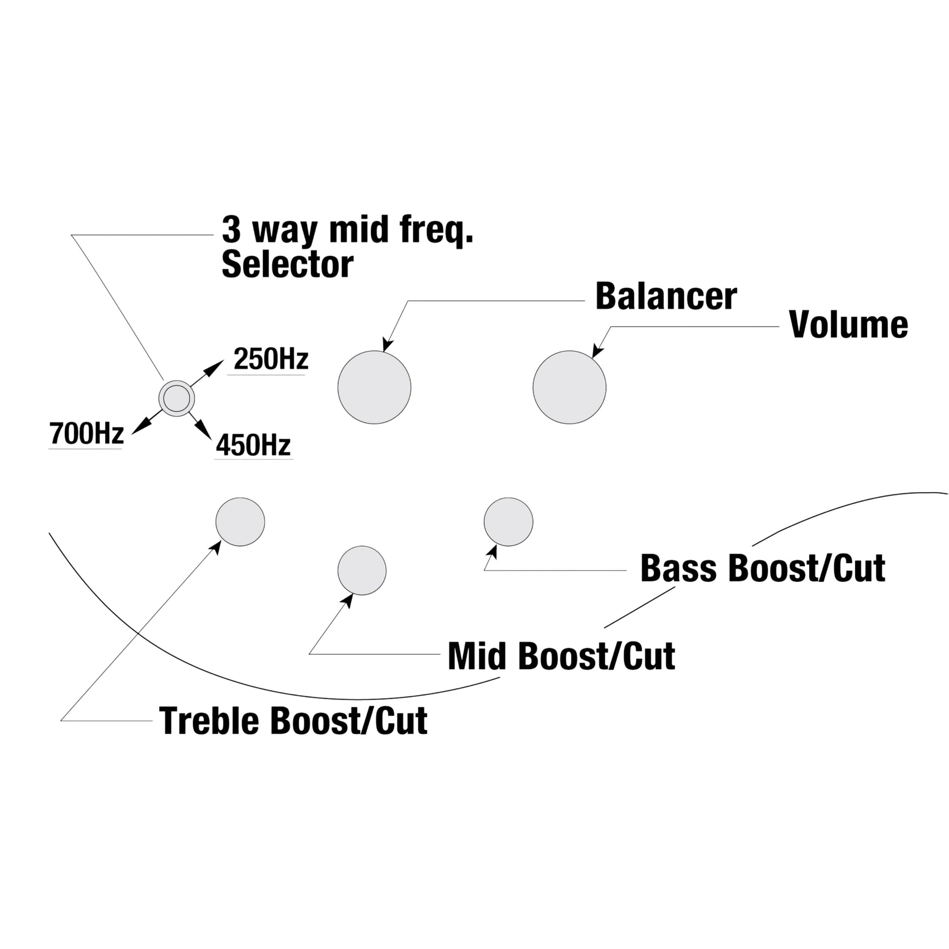 - Mid Frequency Switch: 3-way, 250 / 450 / 700 Hz