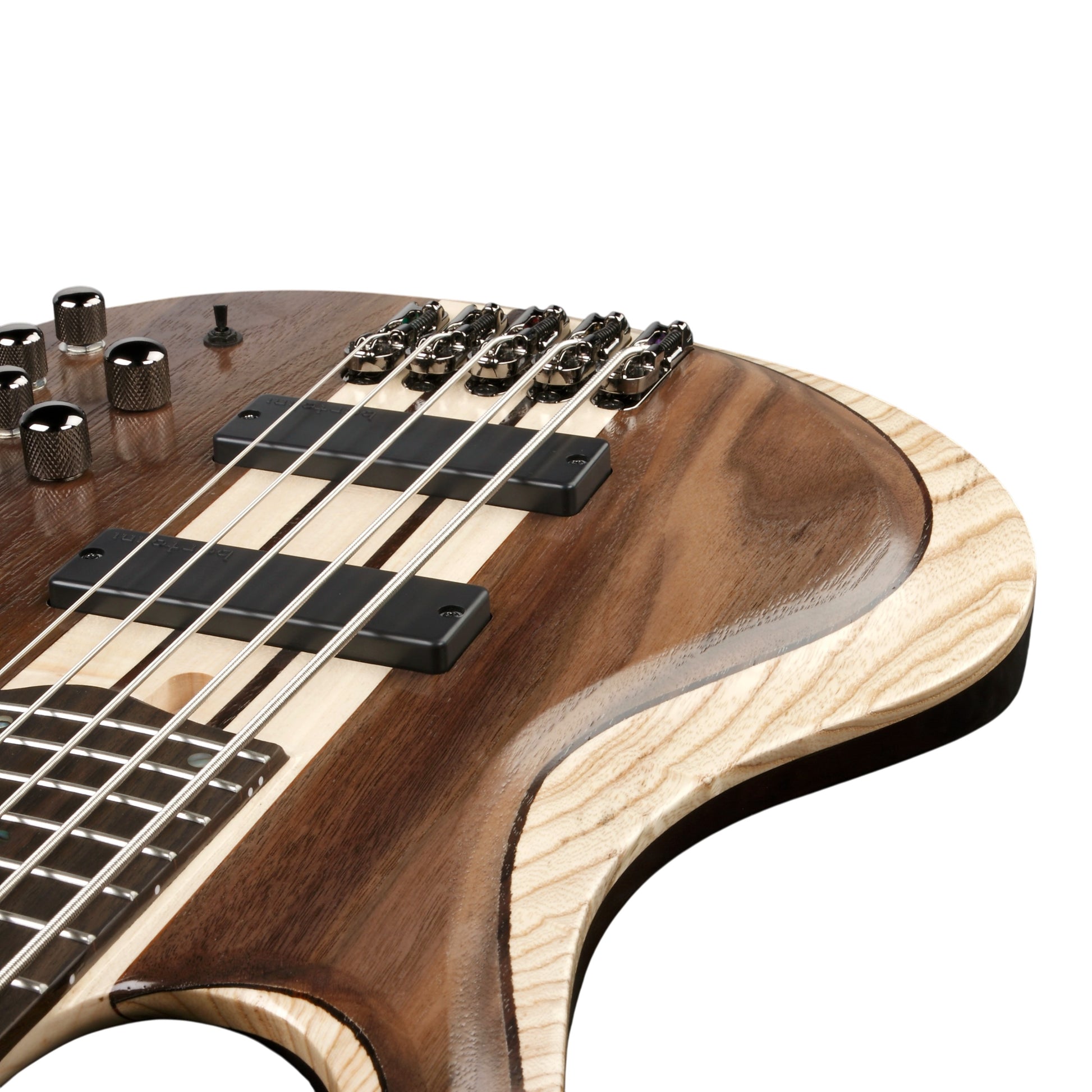The Bartolini® BH2 pickups provide a tight bottom-end, punchy mid-range, and smooth response. The dual-coil style configuration maximizes articulation and a long blade pole piece widens the magnetic field, providing balanced string-to-string pickup response. The Ibanez Custom Electronics 3-band EQ is our latest refinement on the concept of simple, straightforward, no-nonsense EQ control. The Boost and Cut for the Mid Control are each centered on slightly different frequencies, an innovation that delivers a preset range of the most favorable bass tones. The Mono-Rail V is the ultimate bridge for bass string isolation. Each bridge is independently and securely locked down to the body for maximum vibration transfer without interference. The 3-way Mid frequency switch allow players to change the mid-tone between 250, 450, and 700 Hz.