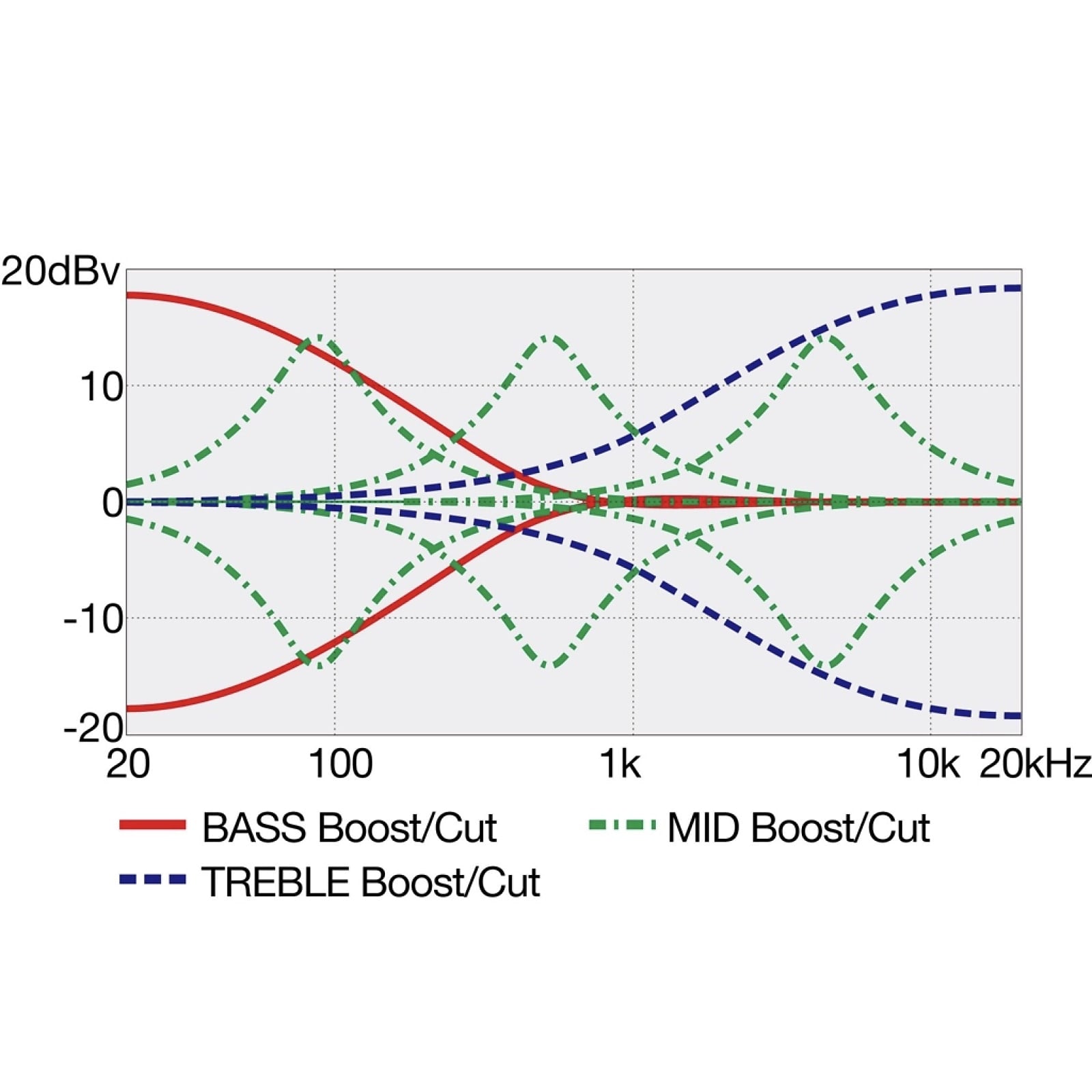 The Vari-mid 3-band EQ features a variable mid-frequency control which allows you to dial in an incredibly wide range of sounds.