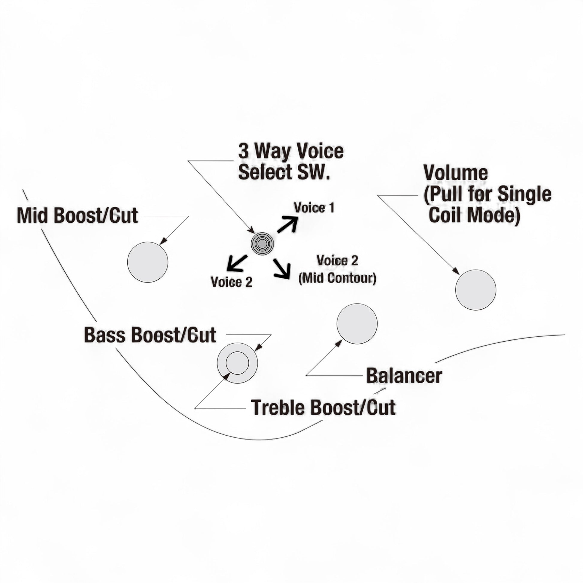 - Single Coil Mode: Same voices as above but with a narrower magnetic field