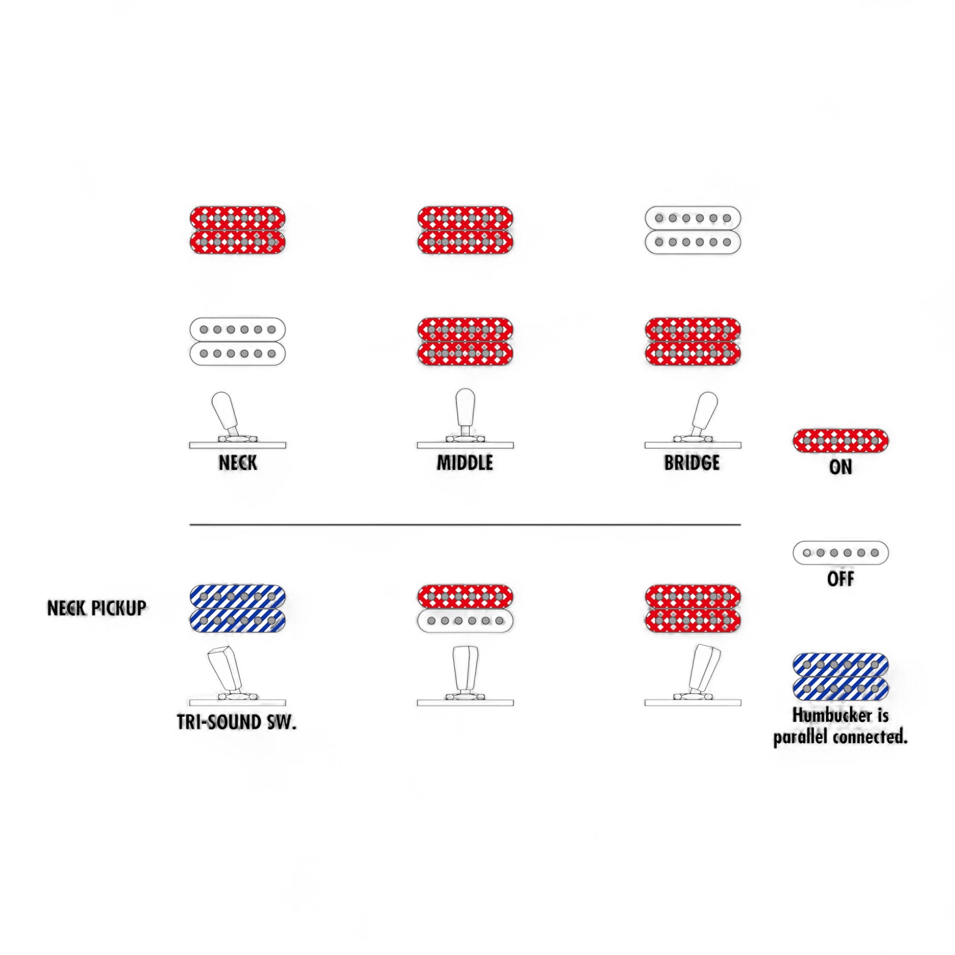 - Tri-sound switch - The Tri-sound switch gives a humbucker pickup three different sounds, expanding the versatility of your guitar.