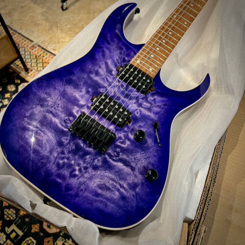 The Quilted Maple top sonically enriches the response for picking. The Meranti body provides a scooped mid-ranged sweet tone.
