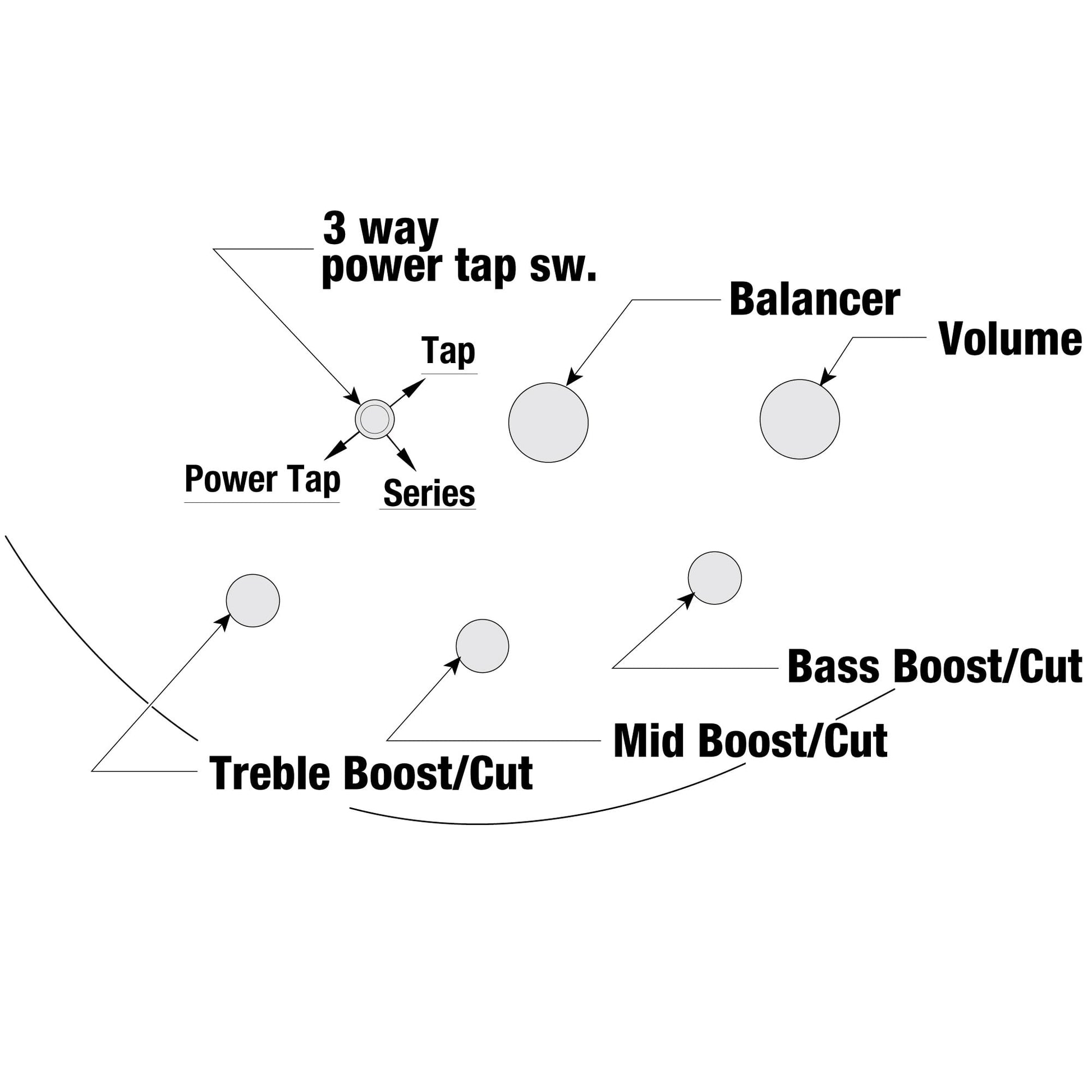 - 3-way Power Tap switch - Accessed by the 3-way Power Tap switch, the pickups offer a choice of three tonal personalities: A rich humbucker sound, a pure single-coil sound, or an enhanced single coil sound— fattened by lows from the humbucker pickups.