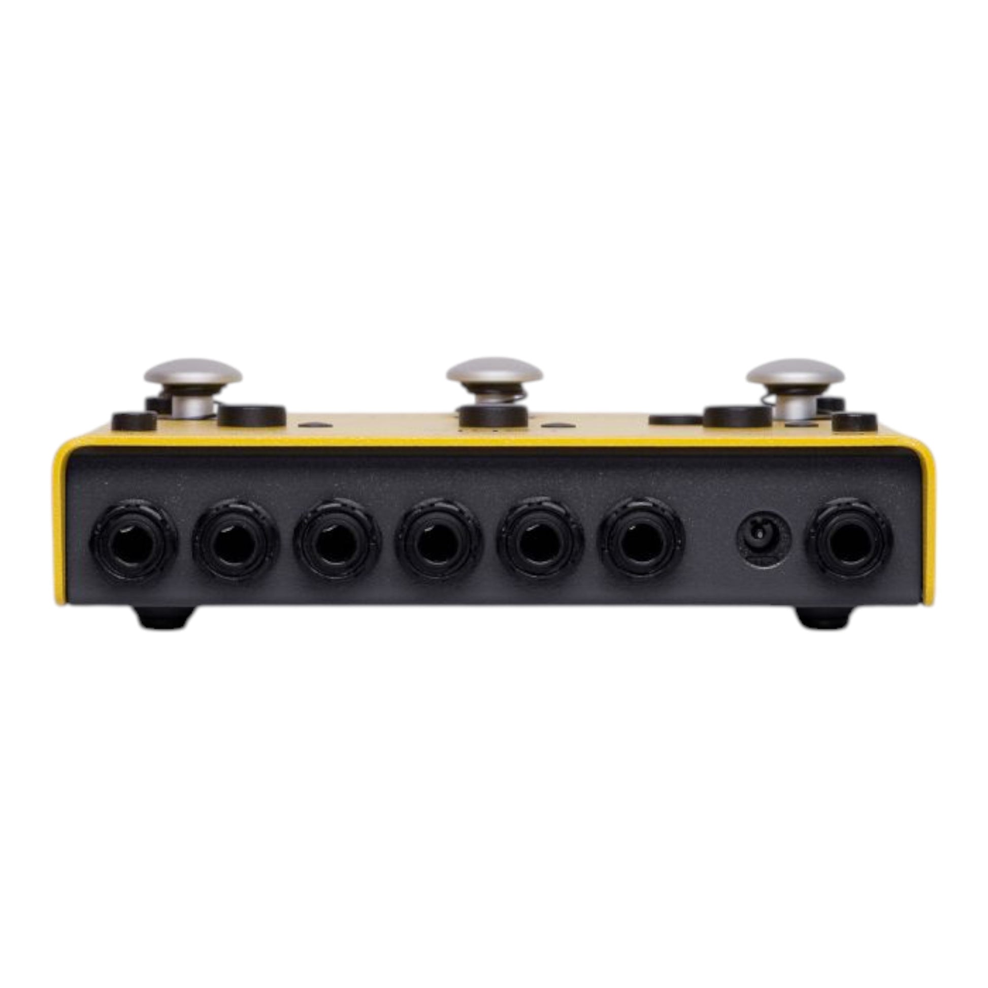 The jack sockets and internal signal routing are entirely stereo, to permit full-quality use of studio, 19" and stereo effect-pedal units, too. This is assured by the True Bypass characteristics of the Lehle switchers and their gold-plated-contact relays. The signal ground is also switched, to eliminate hum in your effect loops, and a pop-and-click suppression circuit avoids annoying switching noise.