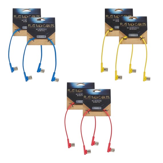 MIDI Pedalboard Routing Kit - 6x 30cm 12-in Flat DIN MIDI Cables (2x Blue, 2x Red, 2x Yellow)