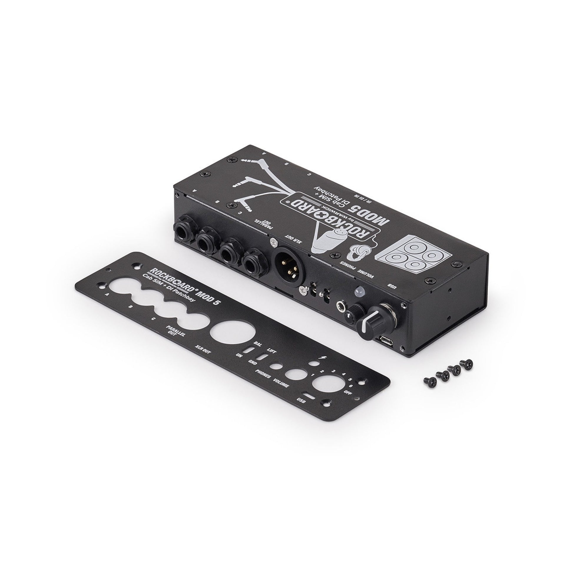Rockboard MOD5 Cab Sim + DI Patchbay + Headphone amp for Pedalboards (features detachable front plate for top mounting!)