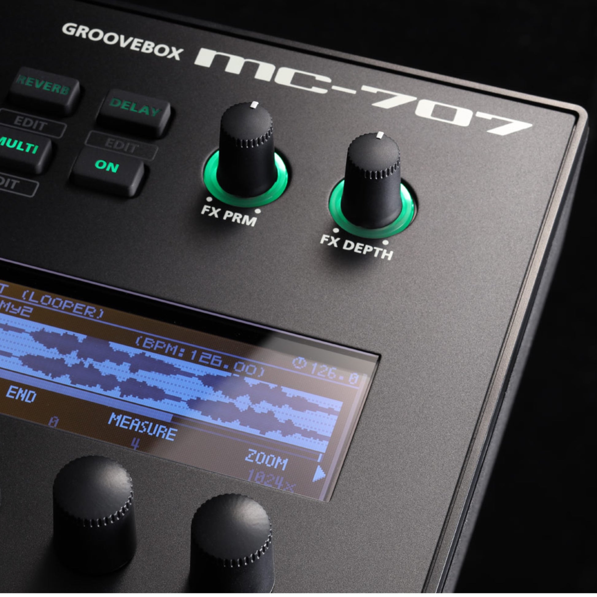 The MC-707 GROOVEBOX has everything you need to create a song or perform a live set without a computer. Immerse yourself in eight tracks of recording, sequencing, synthesizers, and effects, plus a curated palette of sounds, loops, and phrases. Record audio and MIDI—with deep control over timing—and tweak the faders and knobs for that “in the moment” experience. With such massive potential, you’re ready to produce in any style or create your own new thing.