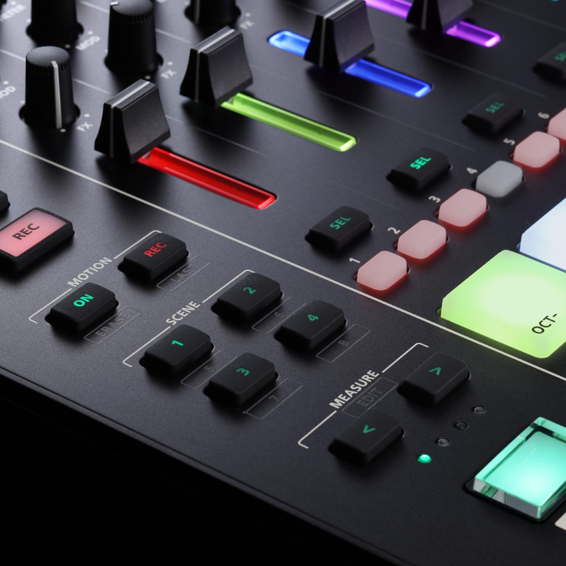 The MC-707’s eight-track sequencer is optimized for fluid production of today’s electronic-focused music styles. Quickly build parts with the TR-REC step sequencer found on classic Roland drum machines and use the 16 ultra-sensitive pads to play and record drum parts, melodic basslines, or polyphonic chord progressions. Sequences are stored in clips that contain your sounds and note data, plus real-time or drawn automation for creating effect changes, slow filter sweeps, and much more. You can capture clips in Scenes to perform complete songs, and use creative tools like note repeat, chord designer, and step LFO to supercharge new ideas.