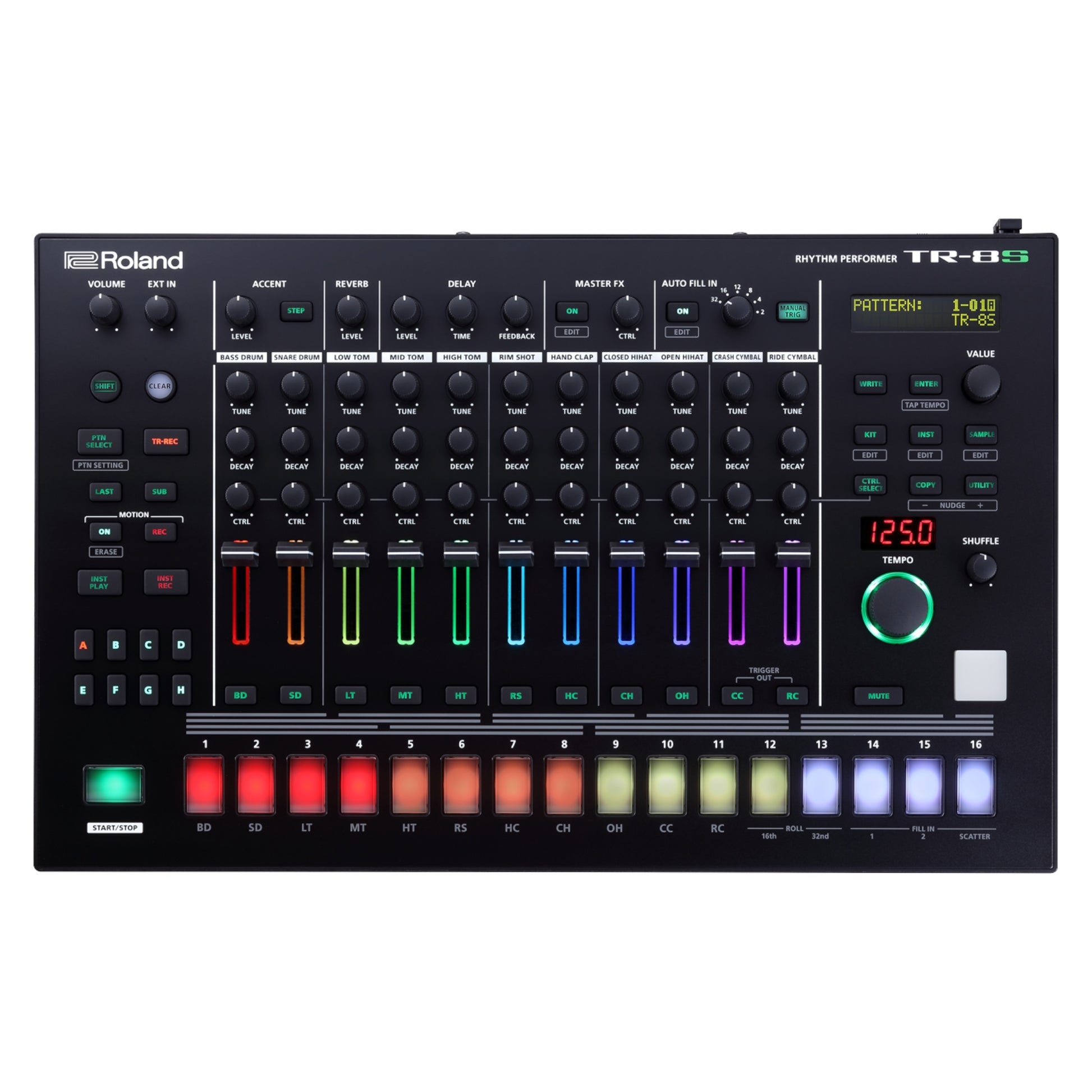 Born of the most famous and influential drum machines ever made, the TR-8S combines the best of its Roland heritage with modern production techniques and comprehensive sound design. The result? The most complete drum machine to date—a forward-thinking, performance-tuned instrument unlike any other. Build your dream kit from the most iconic drum sounds of all time, otherworldly FM sounds, and the finest selection of samples from our vast library—or go even further by importing your own custom samples. Tap, tune, and tweak with hands-on controls and production tools that make your patterns move and groove. And why keep this kind of percussive power confined to the studio?