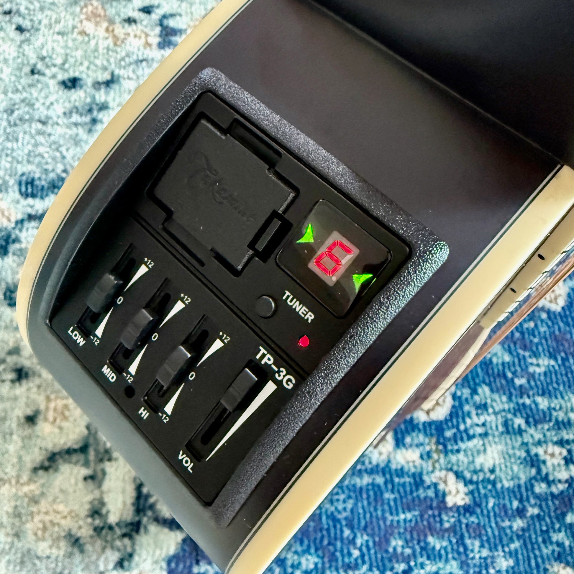 (B-STOCK INSTRUMENT.  THIS GUITAR WAS RETURNED IN LIKE-NEW CONDITION, APART FROM A SCRATCH ON THE TOP, BELOW THE BOTTOM RIGHT OF THE PICKGUARD.  IT ALSO HAS A BIT OF AN ODD FINISH ON THE BACK THAT SHOWS SOME WOOD GRAIN LINES.  SEE PHOTOS OF ACTUAL INSTRUMENT FOR SALE. APART FROM THOSE COSMETIC ISSUES, THE ITEM IS OTHERWISE LIKE NEW, LOOKS AND PLAYS GREAT, WITH A BIG BEAUTIFUL SOUND, SUPER-COOL INLAYS, SATIN FINISH AND HARDWARE.)