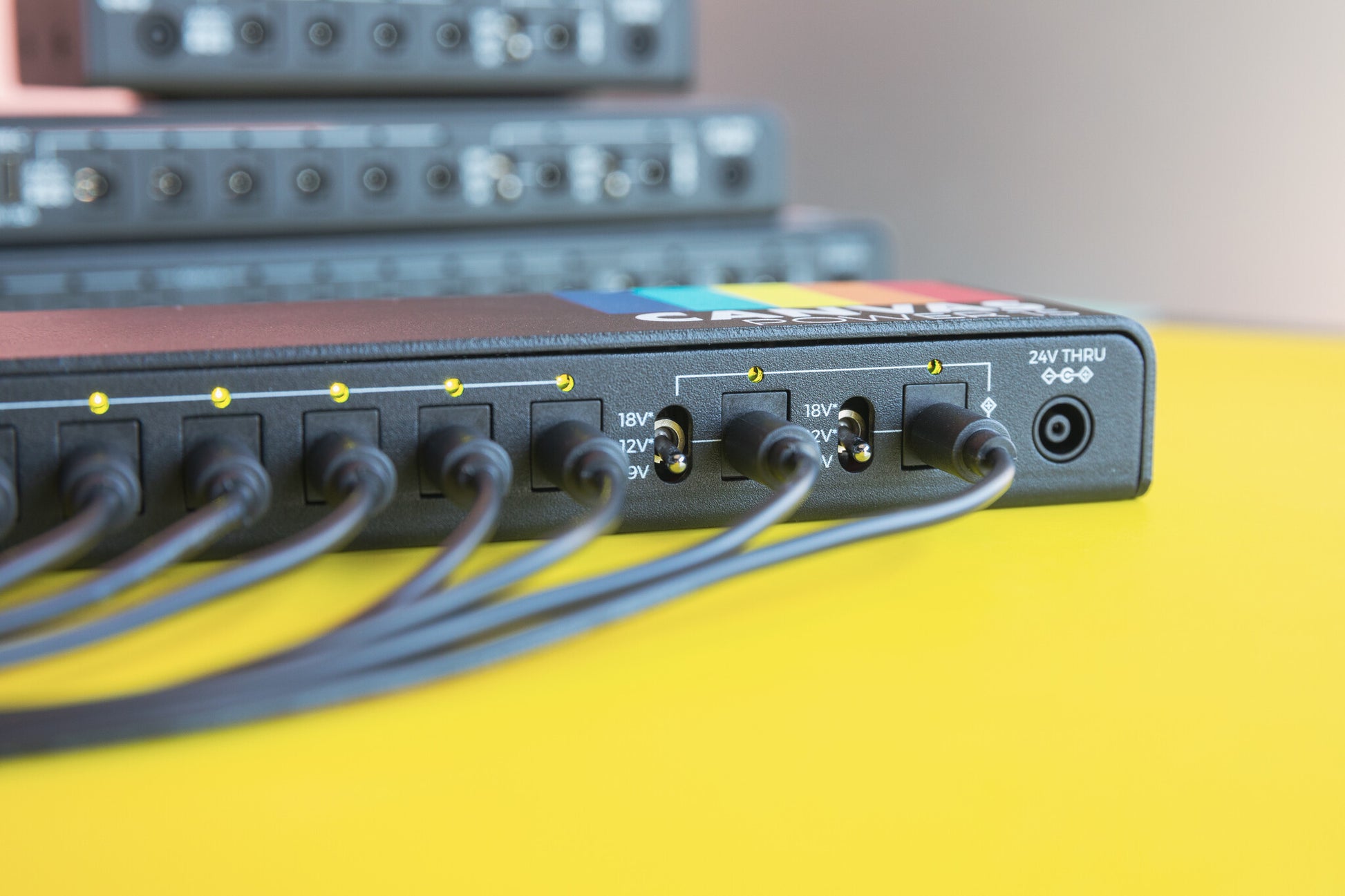 The Canvas Power 5 has 5 isolated power outputs delivering up to 500mA of clean power at 9v. One of the outlets is variable voltage, letting you switch between 9v, 12v, and 18v for powering high-voltage pedals.
