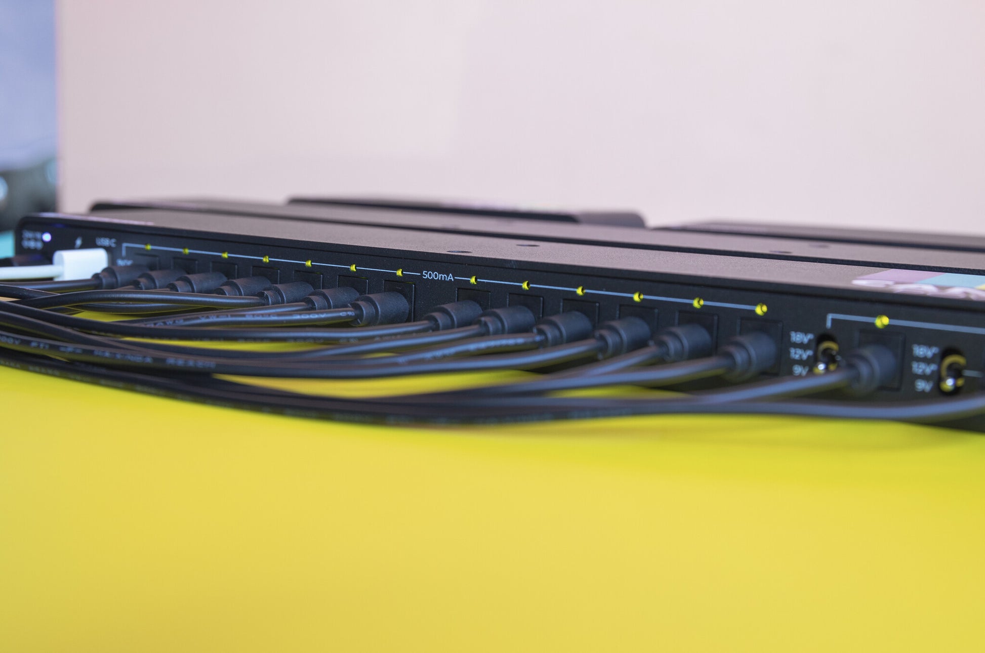 The Canvas Power 22 has 22 isolated power outputs delivering up to 500mA of clean power at 9v. Two of the outlets are variable voltage, letting you switch between 9v, 12v, and 18v for powering high-voltage pedals. It also includes a USB-C port for powering devices like your phone or tablet while you play.