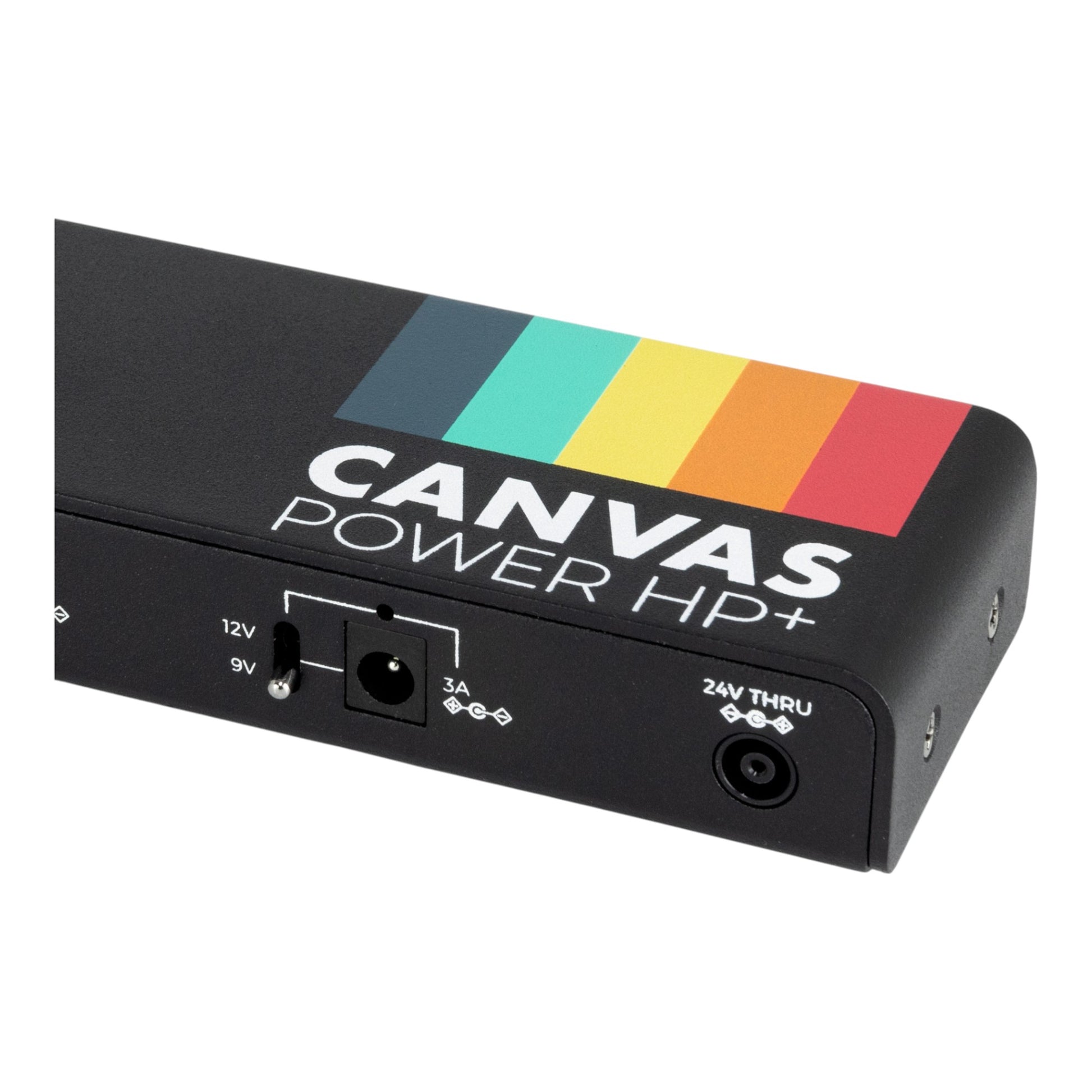 The Canvas Power HP Plus is a perfect power solution for hybrid rigs running pedals, modelers, and/or multi-effect pedals allowing you to power the thirstiest of pedals with two, 3A (three Amp, or 3,000mA) outputs. The HP Plus also has 7 isolated power outputs delivering up to 500mA of clean power at 9V and a 9/12/18V variable output. The 3A outputs can switch between 9V and 12V to power high-voltage pedals.