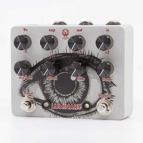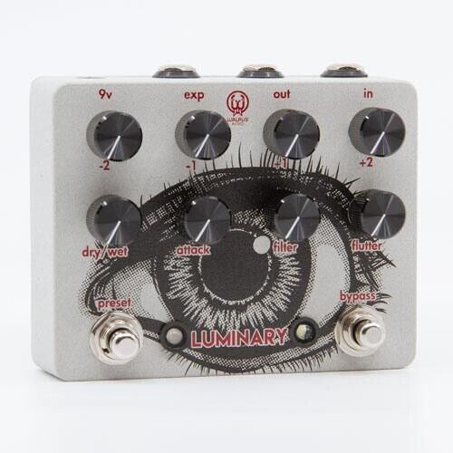 The Luminary is a powerful polyphonic quad octave generator with features for creating inspiring symphonic gusts of sound. Operating on the Analog Devices Sharc platform, the Luminary gives you the ability to dial in any combination of four separate octaves including -2, -1, +1, and +2, the user can craft many different complex sounds and textures with crystal clear and immediate octave tracking. The Luminary has three onb+I297oard presets available for saving your go-to sounds, as a well as live mode. This means the user can have up to four custom sounds available at any moment. Get epic steel sounds with the modulation control unengaged. You'll find more experimental options with the filter control or a tremolo effect with the flutter control. Couple the Luminary with an expression pedal to expand its creativity even more.