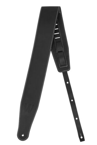 Warwick Teambuilt Genuine Leather Bass Strap, Black with Blind Embossing